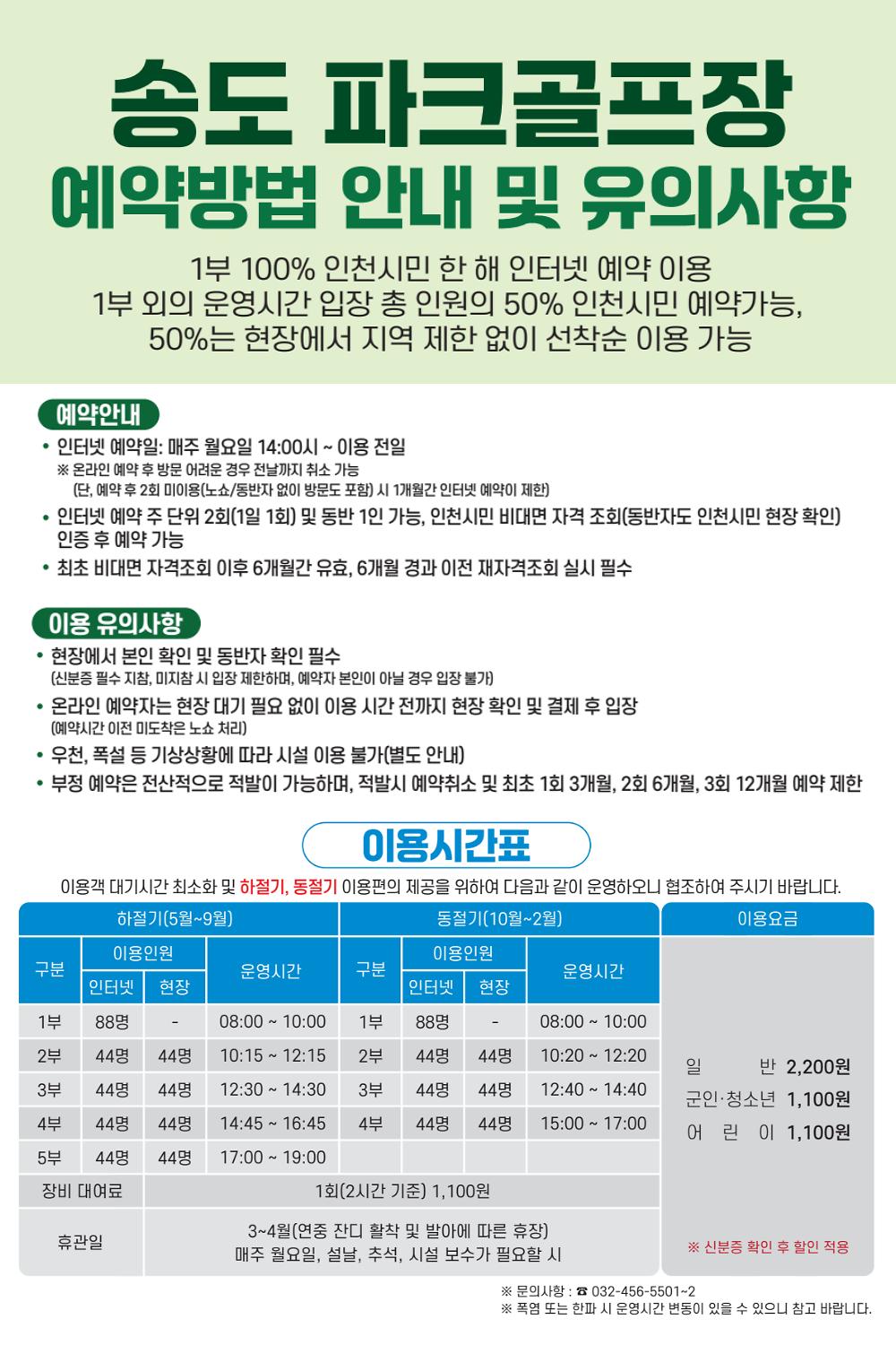 송도파크골프장 예약방법 변경 및 이용안내