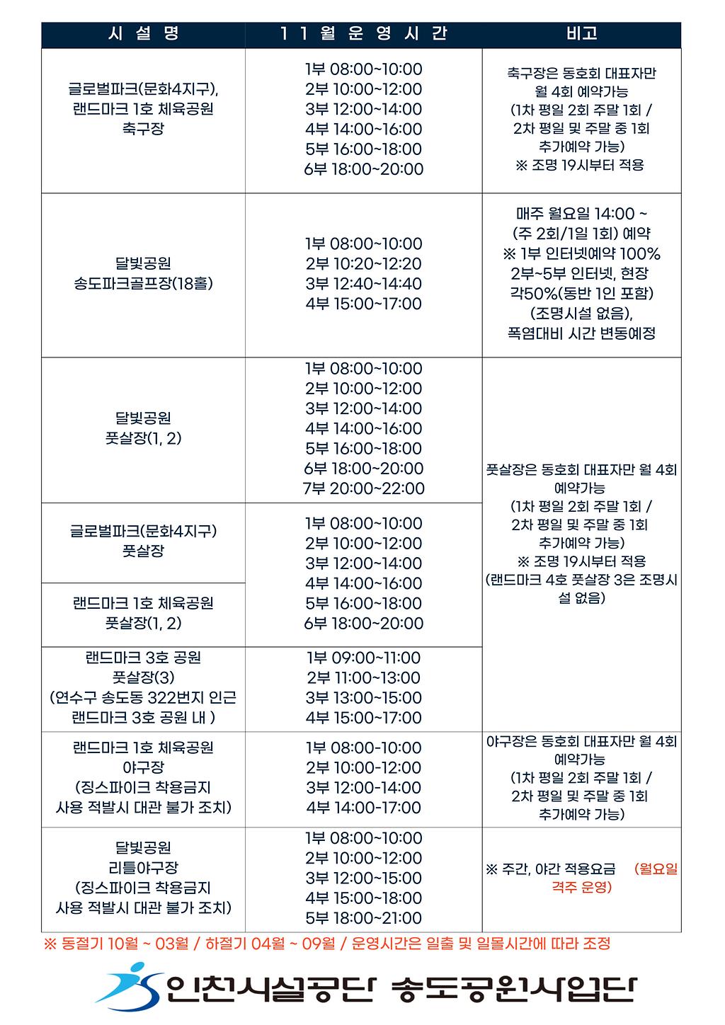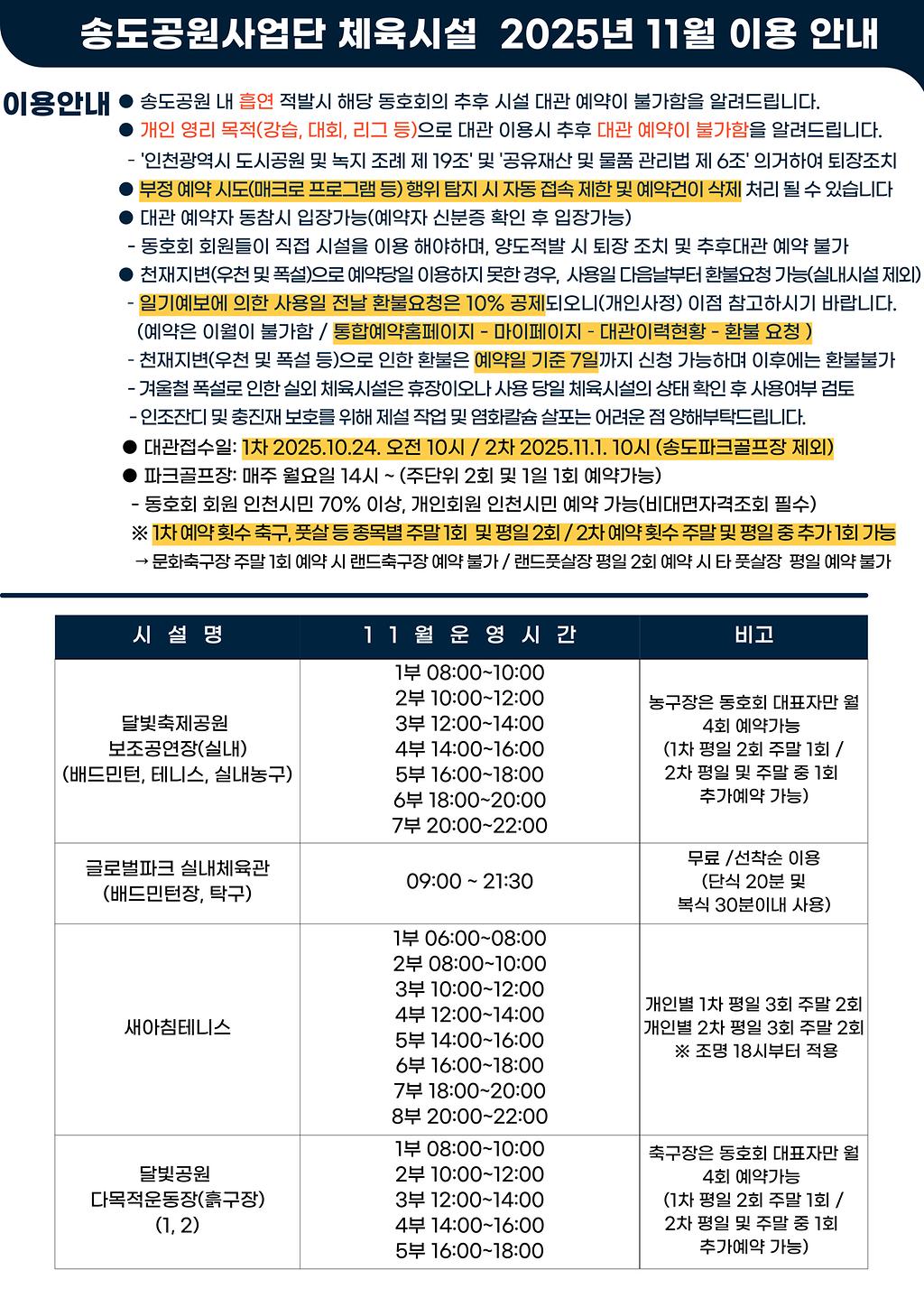 2025년 씨사이드파크 11월 체육시설 운영 안내