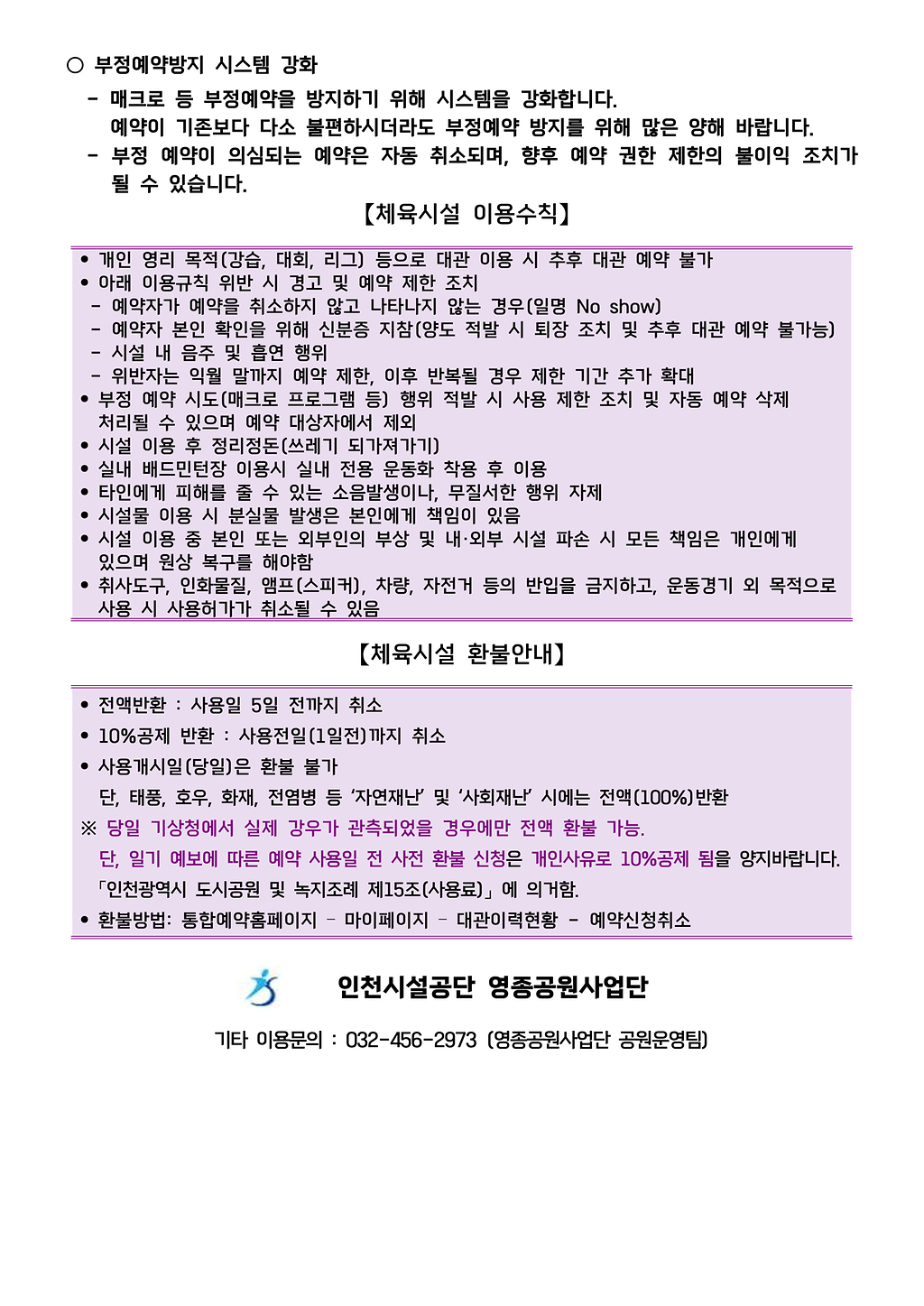 2025년 12월 송도공원내 체육시설 예약변경 및 이용안내