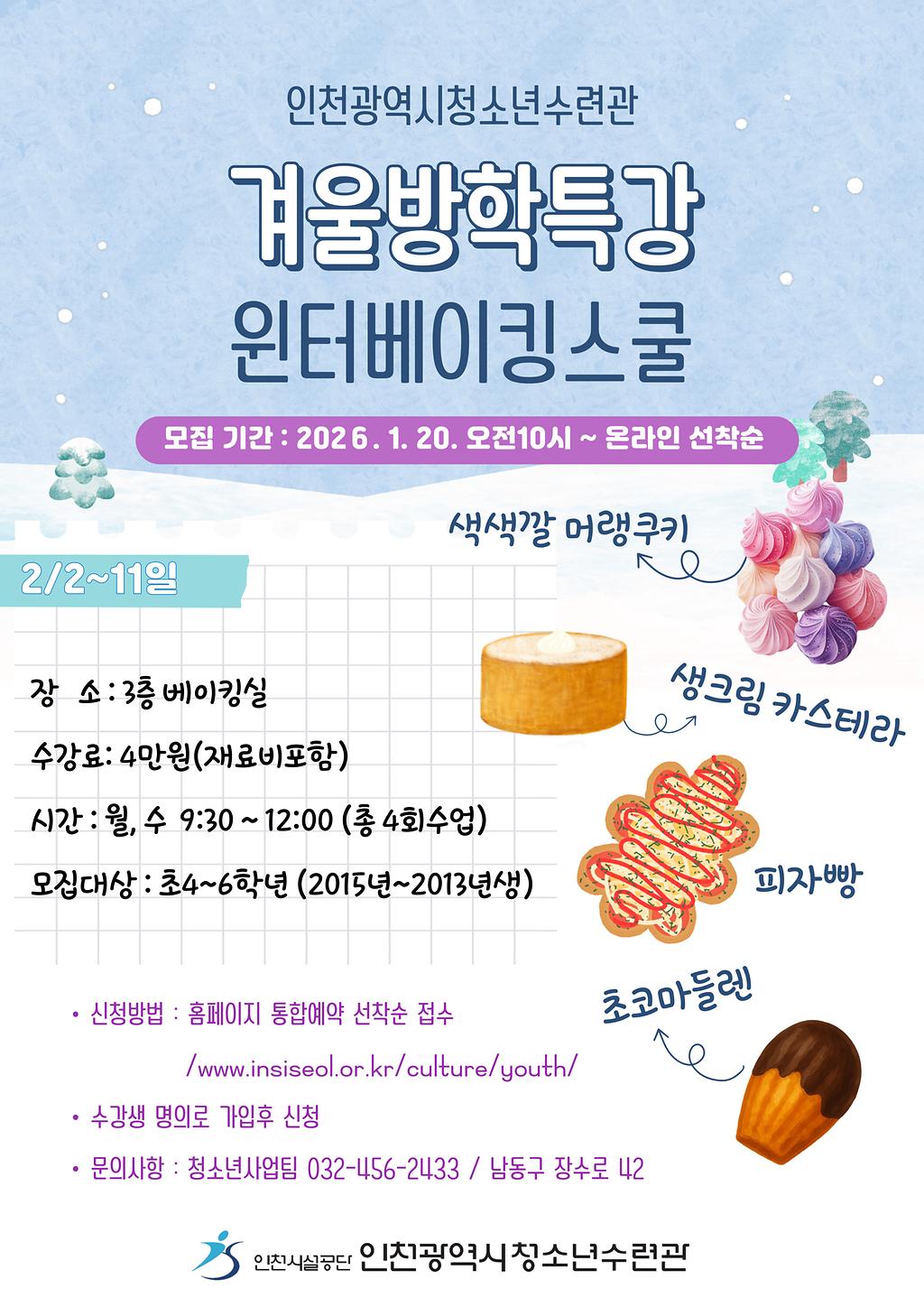 방학기간을 활용한 빵, 쿠키 등 베이킹 체험교실입니다.
