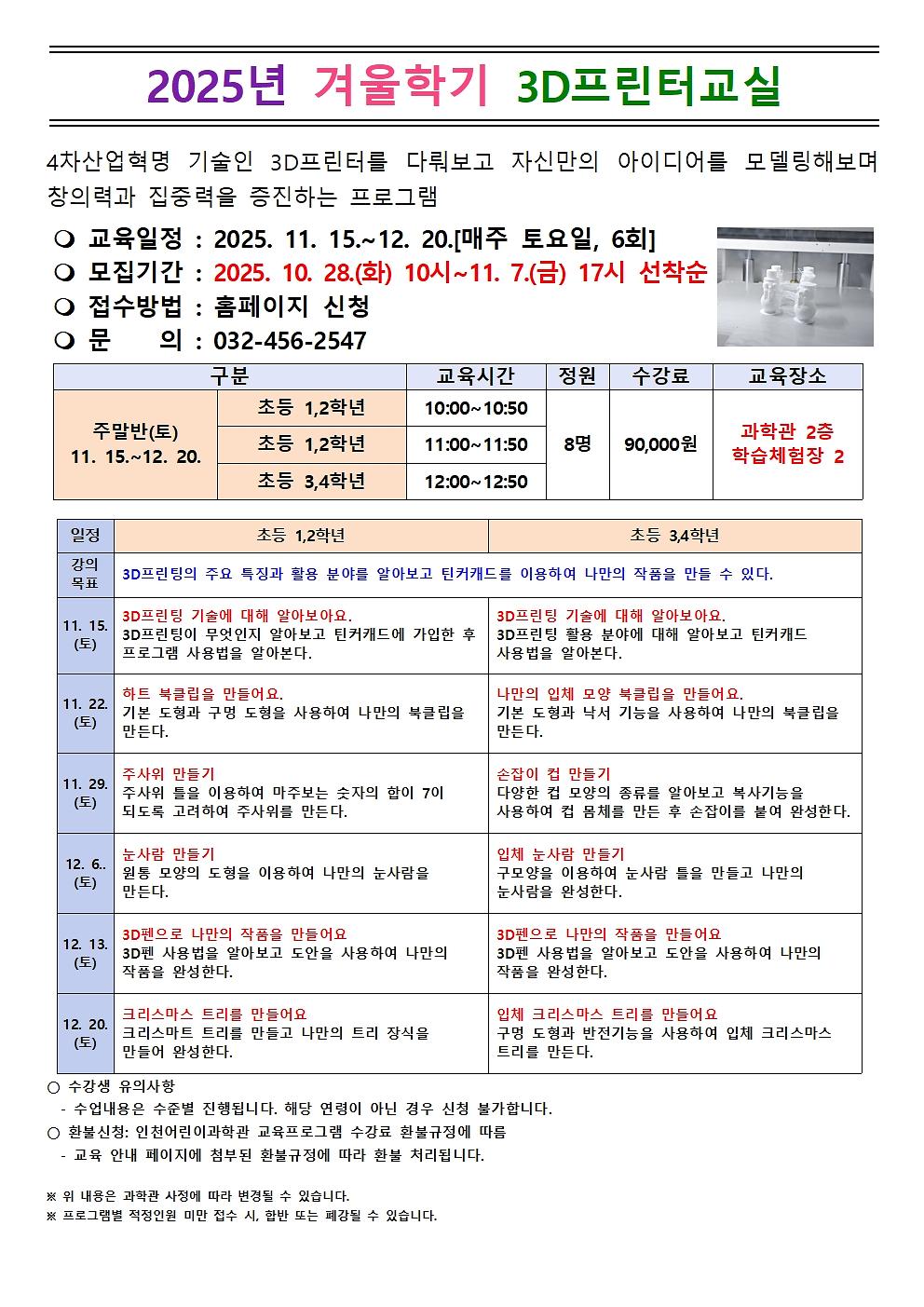 겨울학기 3D프린터교실(1,2학년 10:00)