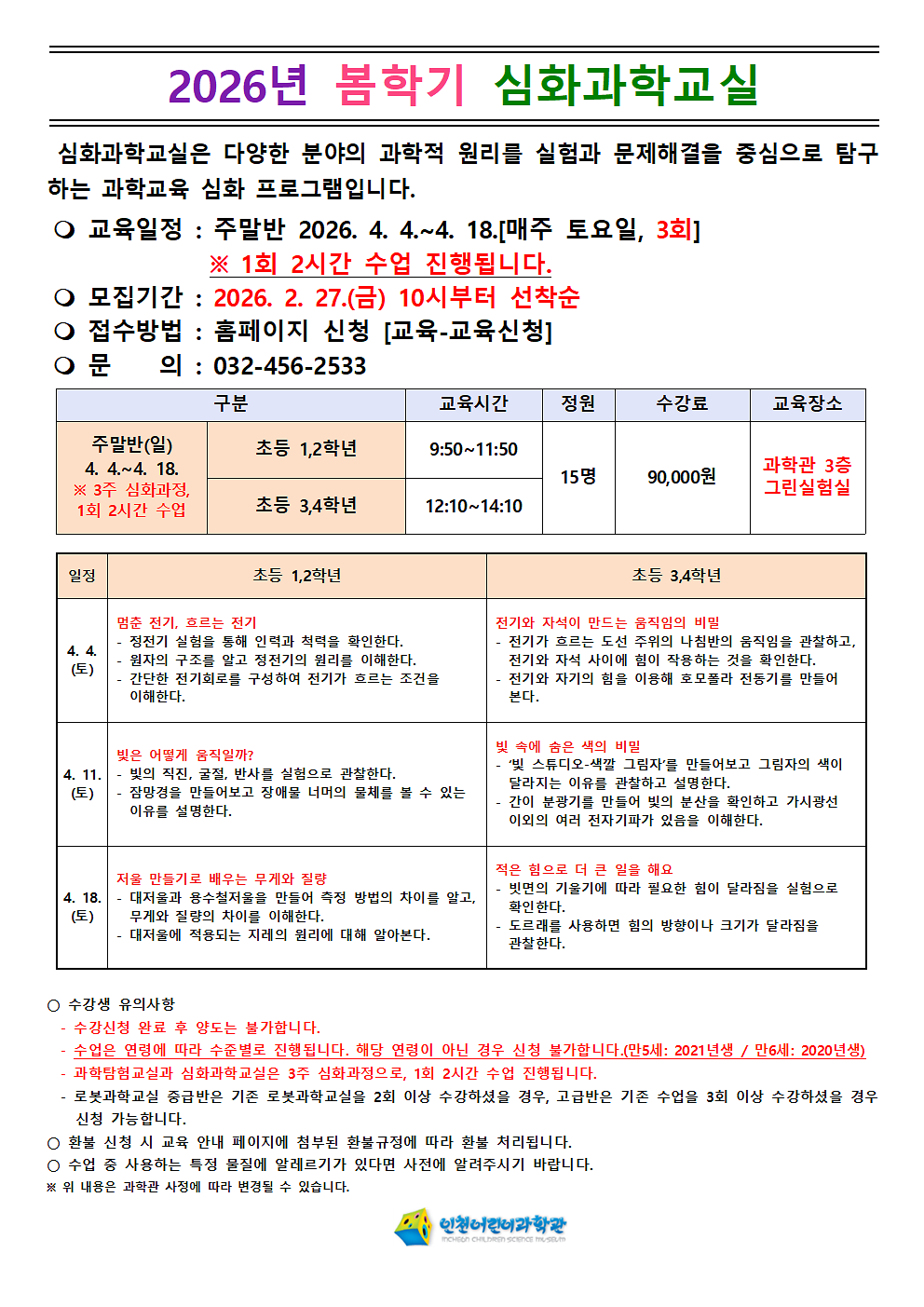 심화과학교실(1,2학년 9:50 / 2시간)