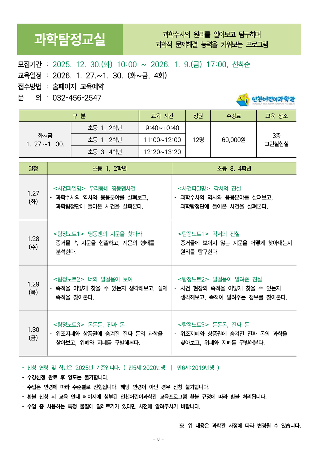 과학탐정교실(1,2학년 11:00)